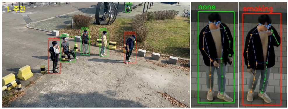 해당 시스템은 흡연자의 행동을 AI 딥러닝 방식으로 흡연자를 분석, 검출하여, 흡연 금지 안내 방송을 송출하는 제품입니다.